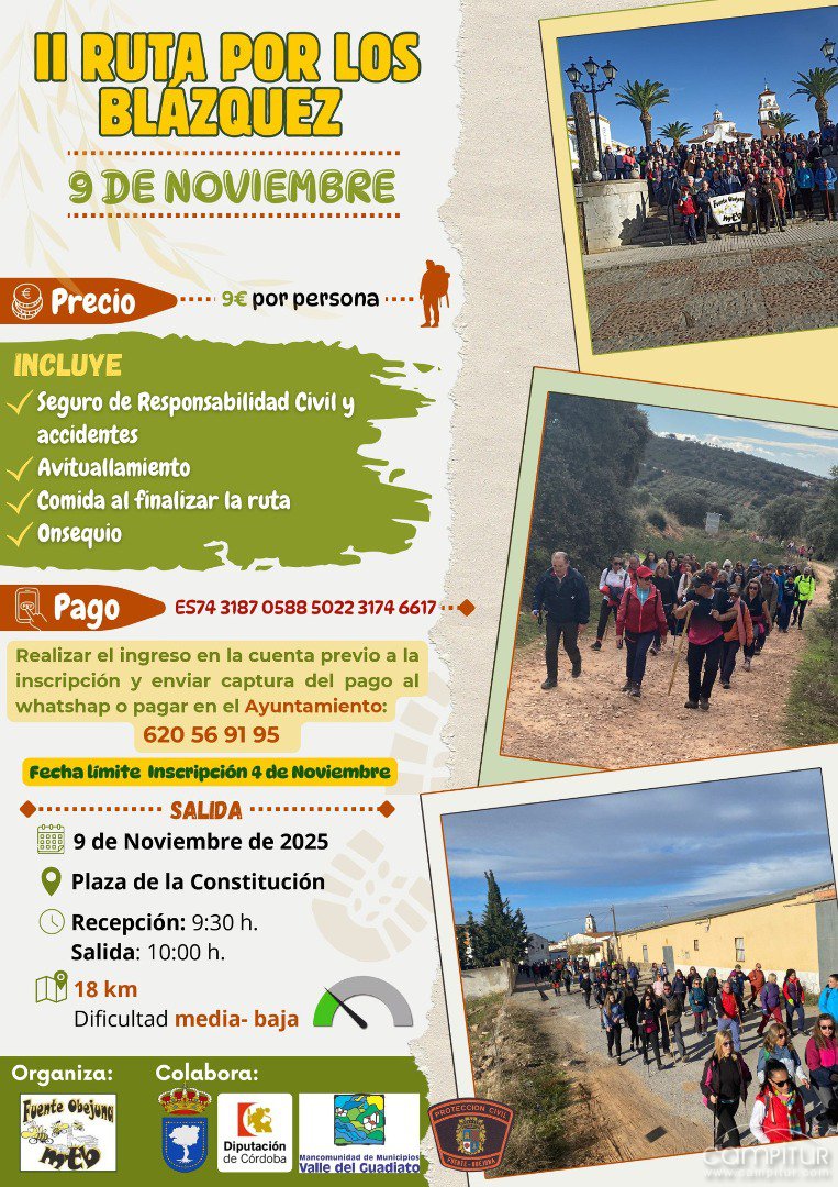 La actividad tiene un coste de 9 euros por persona, que incluye el seguro de responsabilidad civil y accidentes, el avituallamiento, la comida final y un regalo conmemorativo. Las inscripciones podrán realizarse hasta el martes 4 de noviembre, mediante ingreso en la cuenta indicada por la organización o directamente en el Ayuntamiento de Los Blázquez, enviando el comprobante por WhatsApp al número 620 56 91 95.